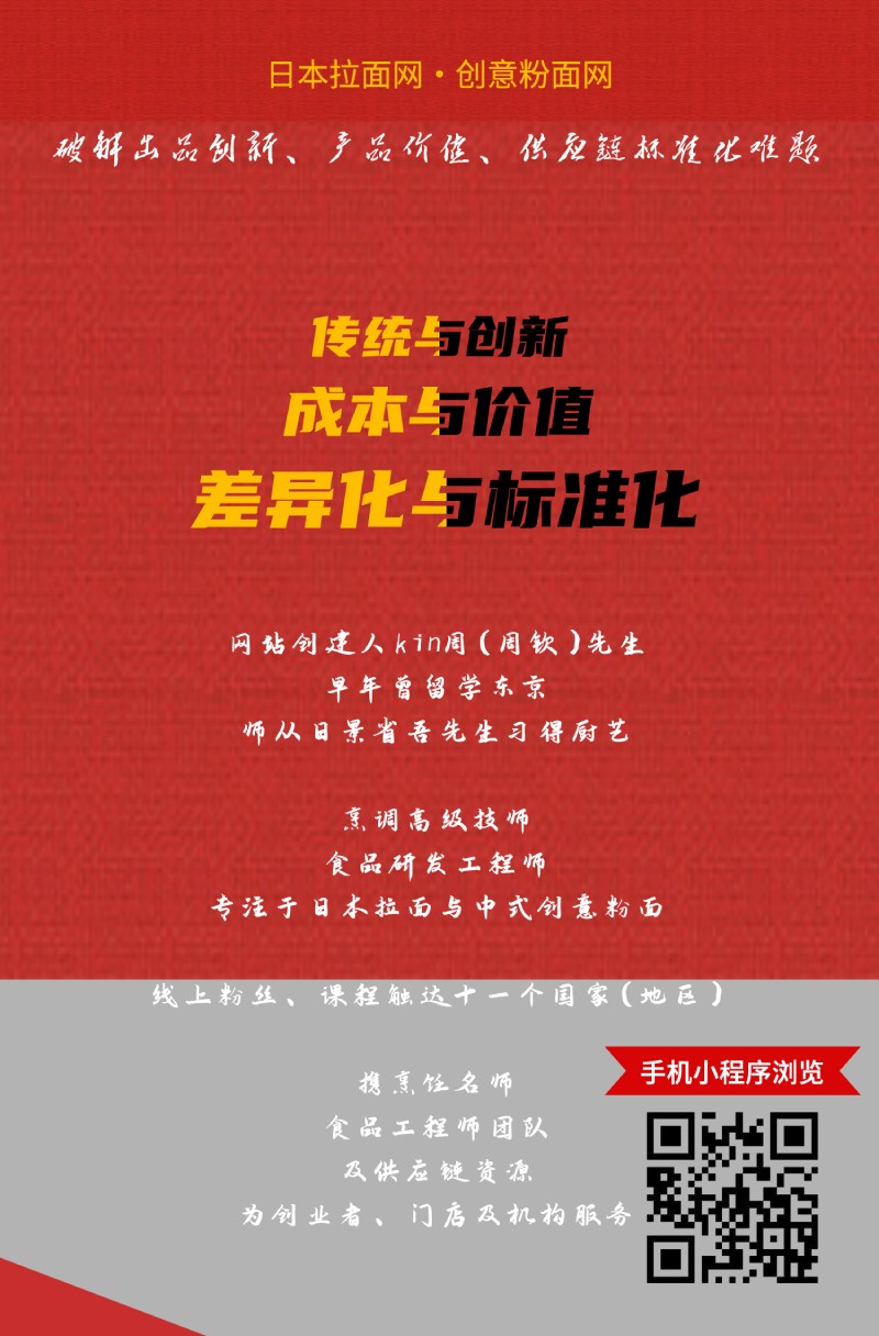 日本拉面网由虎系技术团队出品;致力于日本拉面技术培训与食文化推介。虎系创建人kin周,1990年代在东京师从日景省吾先生,二十多年持续跟踪日本拉面技术变革和潮流,深入研究理论和实操,为虎系团队积累了深厚的系统知识及技术。日本拉面在特定的历史背景下,以中国南方厨师(以广东、福建为主)的汤面为雏形,经各地独自发展成丰富的地方流派,进而提炼出豚骨拉面、酱油拉面、盐味拉面、味噌拉面、鸡白汤拉面等调味(或汤底)特征;造就福冈县博多拉面、北海道札幌拉面、福岛县喜多方拉面等三大区域的拉面盛况,被称为日本三大拉面;日本拉面起源和发展的过程,中国拉面师傅起到很大的作用。这些历史故事,将一一为大家呈现。味噌拉面是重大的调味革命,使日本拉面摆脱了中国汤面的调味束缚,真正成为日本食文化的一部分;也启发了拉面匠人对调味的更高追求,更多的日本食材被尝试运用;调味酱汁领域的逐步突...